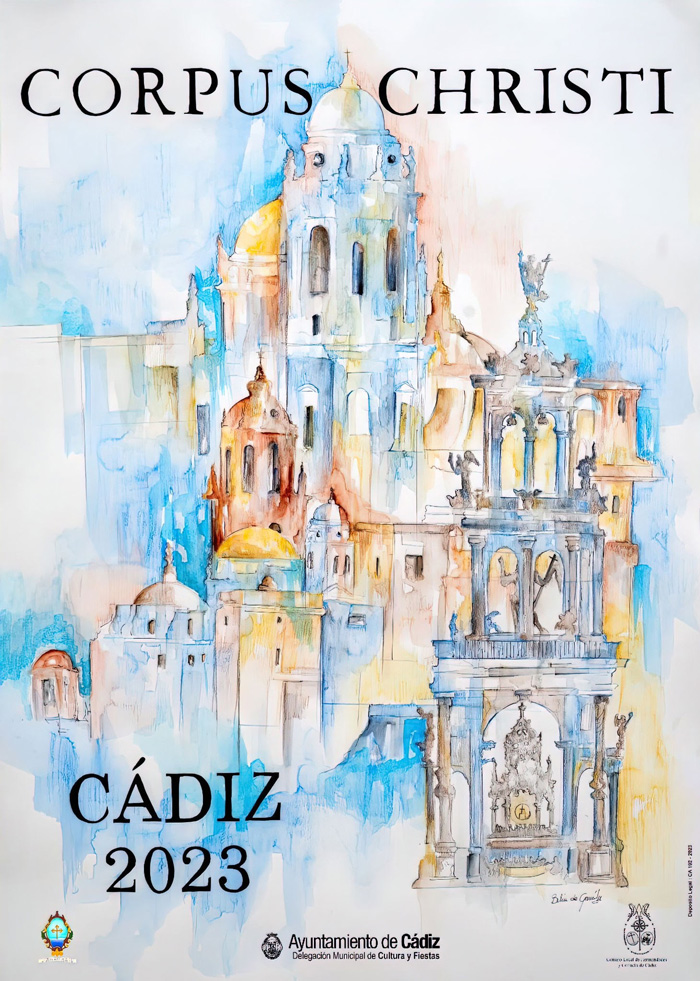 Un año más la capital gaditana se prepara para la celebración de un nuevo Corpus. En el día de ayer la concejala de Cultura y Fiestas en funciones del Ayuntamiento de Cádiz, Lola Cazalilla, y Paco Muriel en representación del Consejo Local de Hermandades y Cofradías, presentaban el cartel y la programación oficial del Corpus Christi 2023. Les acompañaban la autora del cartel, Belén González García-Negrotto, y el deán de la Catedral de Cádiz, Ricardo Jiménez Merlo.