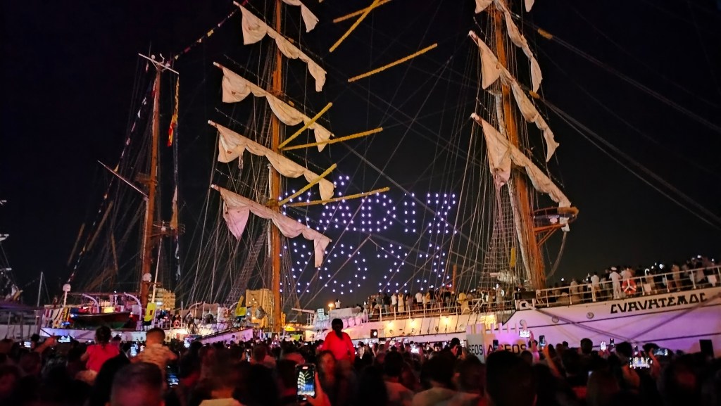 Antes de terminar el espectáculo de drones dejaba una muy buena sensación en el público. Eso sí, escondidos tras los barcos. Lo mismo no era la mejor ubicación. Pero sin duda es algo que podría encajar perfectamente el domingo de carnaval en las Puertas de Tierra. Ahí lo dejo. En cuanto a los fuegos artificiales estoy seguro que ha sido la presión por respetar a los perros y a los niños autistas lo que les ha llevado a ofrecerlos desde la lejanía. Demasiado quizás. El Dj Lollypop ponía la música durante los fuegos siendo imposible escucharlos y el fin a la Regata tras cuatro intensos días.