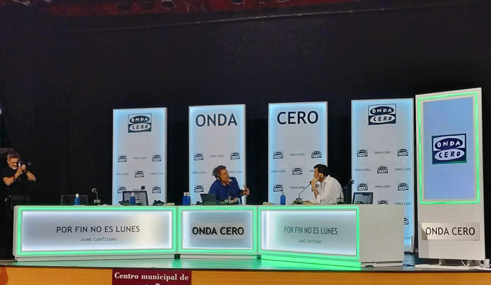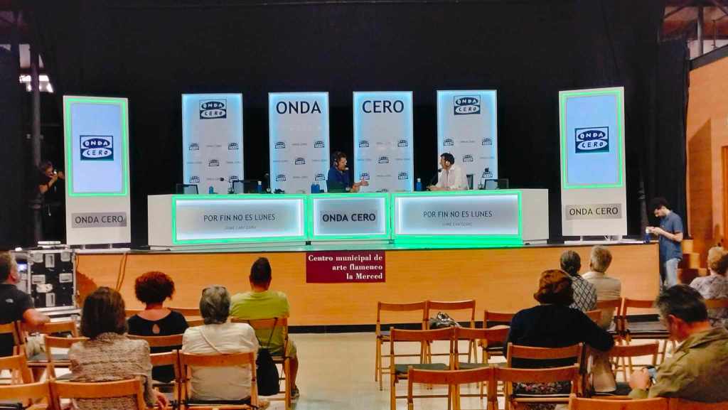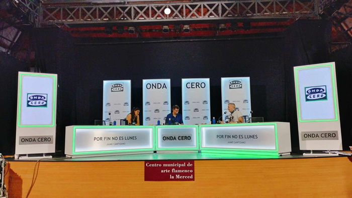 ¡Qué bonito es ver la radio en directo! Más si es en la ciudad de uno. El matinal de fin de semana «Por fin no es lunes» que presenta el jerezano Jaime Cantizano los sábados y domingos ha estado hoy en Cádiz. Concretamente en el Centro Municipal de Flamenco de la Merced donde desde las ocho de la mañana Jaime y su equipo ya estaban en directo. Al programa han acudido, cómo no, personajes gaditanos como el cantaor David Palomar o Luci Vera a la que le han hecho hacer de nuevo el monólogo que la hizo tan conocida en el programa de Irma Soriano. «Chiquillo no me haga decirlo otra vez que esto Cádiz se lo sabe de memoria» le decía a un Cantizano que reía a mandíbula batiente por sus ocurrencias. El presentador también del magazin matinal diario de TVE «Mañaneros» ha insistido en la habilidad que hay en Cádiz a la hora de contar las cosas: «Por eso lo primero que hice cuando supe que veníamos a Cádiz era localizar a Luci para que viniese«