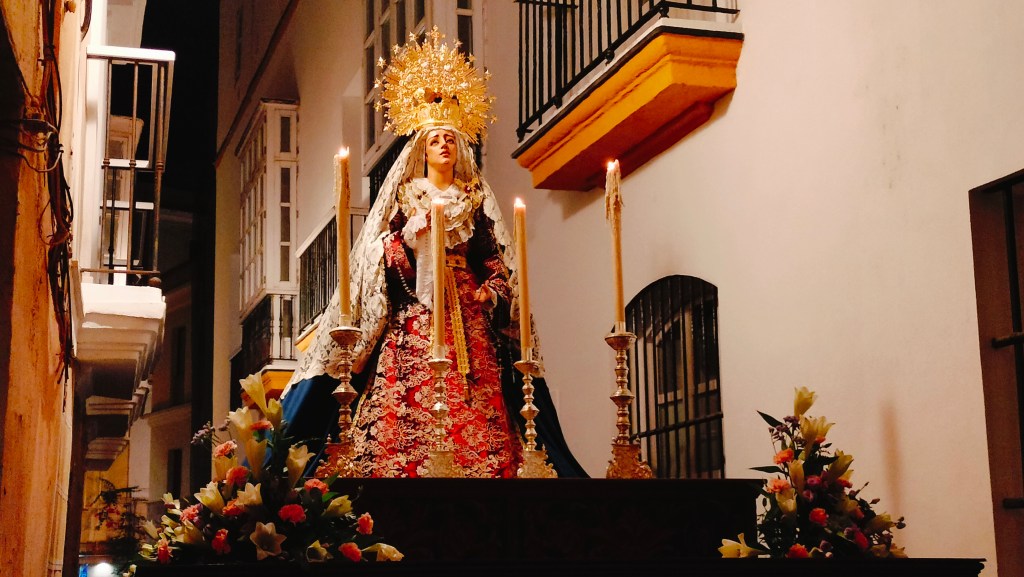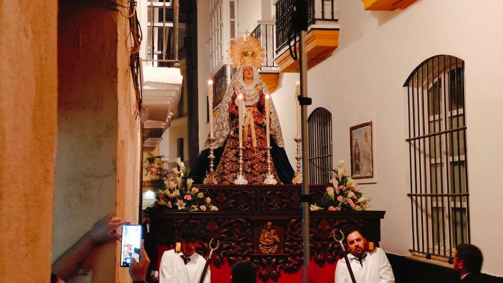 Así, la talla de la Virgen María Santísima de la Consolación, obra del cordobés Alfonso Castellano Tamarit en el año 2020, procesionaba sobre un modesto y ancho paso de caobilla que tuvo su momento más angustioso en su camino por la calle que va del barrio del Pópulo al arco de la Rosa. Un fallo de cálculo o de principiantes que provocó que tuviesen que desmontar parte de los respiraderos ya que no había manera de meter el paso por allí.