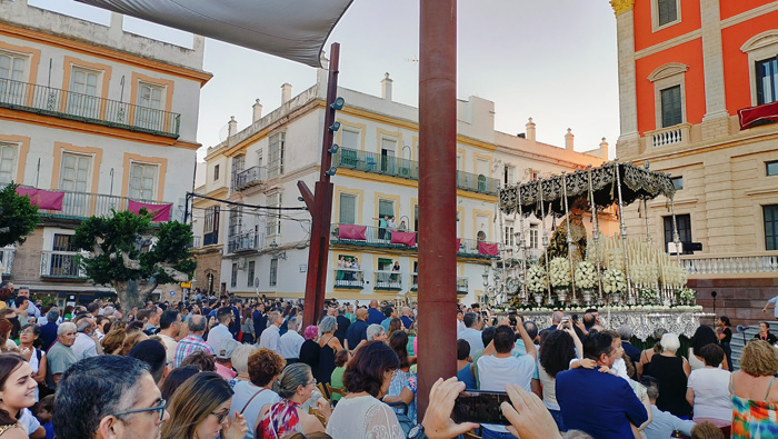 San Fernando vivía este 30 de septiembre una jornada histórica. Un total de 23 hermandades y 25 titulares recorrerían las calles isleñas que a juzgar por el prácticamente inexistente aparcamiento en las mismas, hacía pensar que el centro de la ciudad estaría colapsado. Sin embargo no ha sido así. Es cierto que había muchísima gente pero la amplitud de sus principales calles hacían que el público pudiese moverse con cierta comodidad. Terrazas prácticamente al completo y establecimientos de alimentación lo evidenciaban.