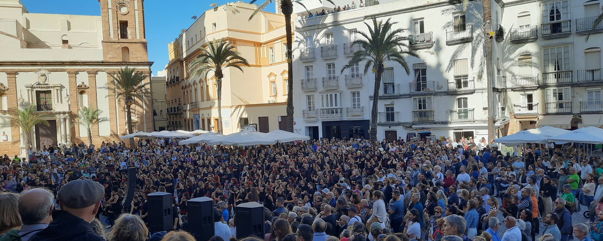 Sin embargo era en la plaza de la Catedral donde más público se concentraba. Había una explicación. Dentro de los actos organizados por el Día Internacional del Flamenco se organizaba un flashmoob a cargo de El Junco que llamaba la atención de muchísimo público.