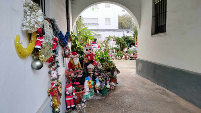 En Puerta Tierra y más concretamente en el número 2 de la calle Francisco García de Sola hay un patio que cada vez llama más la atención de los vecinos que pasan por allí. Y es que en su interior hay adornos para todos los gustos. Papa Noel desde luego se lleva la palma. Los hay de todos los tamaños. Muñecos de nieve, guirnaldas, luces y ciervos de neón que no pasan desde luego inadvertido incluso de día. ¡Imagínense de noche! Estoy seguro que hasta el mismísimo Mr Scrooge saldría con el espíritu navideño más alimentadito…