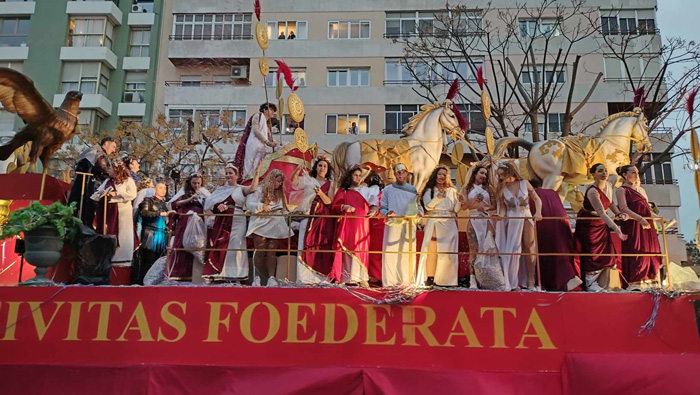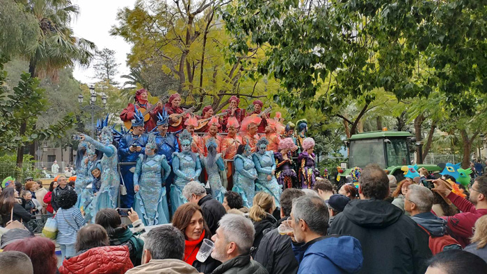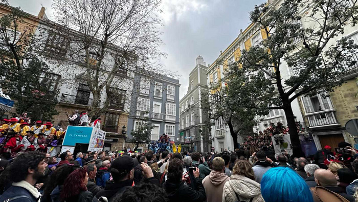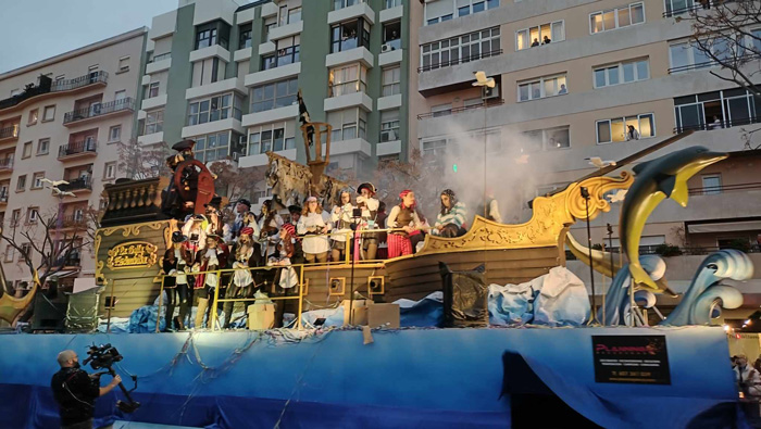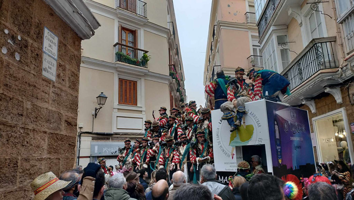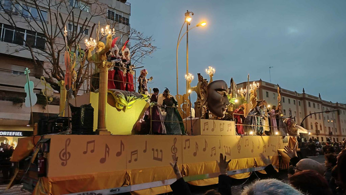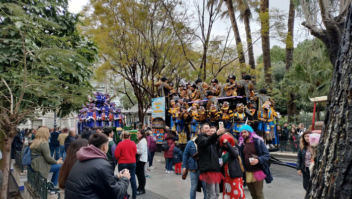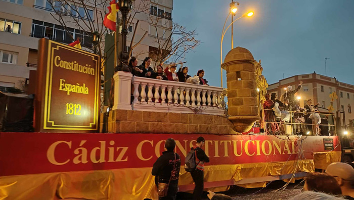 Finalmente la Cabalgata Magna se llevaba a cabo retrasando su salida de las cinco y media a las seis de la tarde y con una pequeña modificación por motivos técnicos. La carroza que tenía música en directo en una de sus nueve carrozas se trasladaría a la plaza de San Antonio. El cielo encapotado se dejaba notar en el ambiente en la avenida con huecos y sillas vacías. Echando en falta el alumbrado de la avenida por carnavales, la Cabalgata comenzaba a dejar patente algunas de sus carencias: ¿dónde estaban un año más las agrupaciones del concurso? Deberíamos reclamarlos ¿Por qué a lo largo y ancho de la cabalgata solo se escuchaba reguetón y ninguna copla de nuestra fiesta? ¿Por qué no hacemos nuestra cabalgata más gaditana? Aun así y basada en la historia de nuestra ciudad pudimos disfrutar entre otras de estas bonitas carrozas.