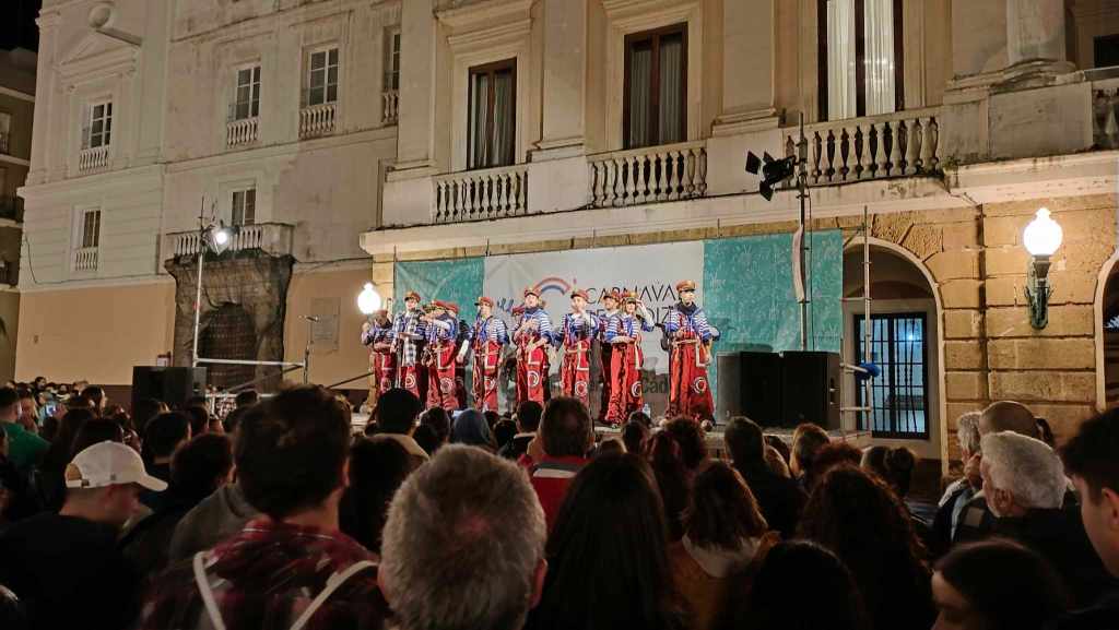 Por otra parte por la plaza de Fragela andaba hasta los topes ante el anuncio que la comparsa de Antonio Martínez Ares había hecho por la mañana en sus redes sociales: la actuación en las escaleras de la Facultad de Medicina a las 23.00 horas. Posiblemente la única que han dado en las calles de Cádiz durante este Carnaval. Una pena…