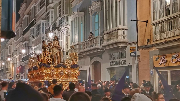 ¡Ya había una cofradía en la calle! Por fin después de dos días sin ninguna (a excepción del Despojado el Domingo que tenía que refugiarse en Catedral). Sin embargo no era la única: Ecce Homo en San Pablo y Columna en San Antonio también decidían salir para alegría del mucho público repartido por las calles del centro. ¡Cuantas ganas había de Semana Santa!