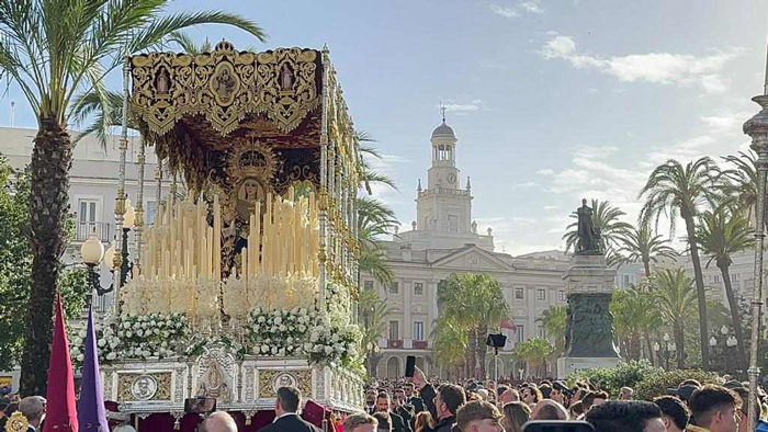 De nuevo y por tercer día consecutivo las malas previsiones meteorológicas volvían a empañar un día más a nuestra Semana Santa. El Miércoles Santo comenzaba desde luego con una intensa lluvia capaz de desvanecer cualquier atisbo de esperanza de los muchos gaditanos que hoy salían en algunas de las cuatro hermandades: Cigarreras, Luz y Agua, Sentencia y Caminito. Luego los cielos se despejaban volviéndose a cubrir sobre las tres de la tarde.