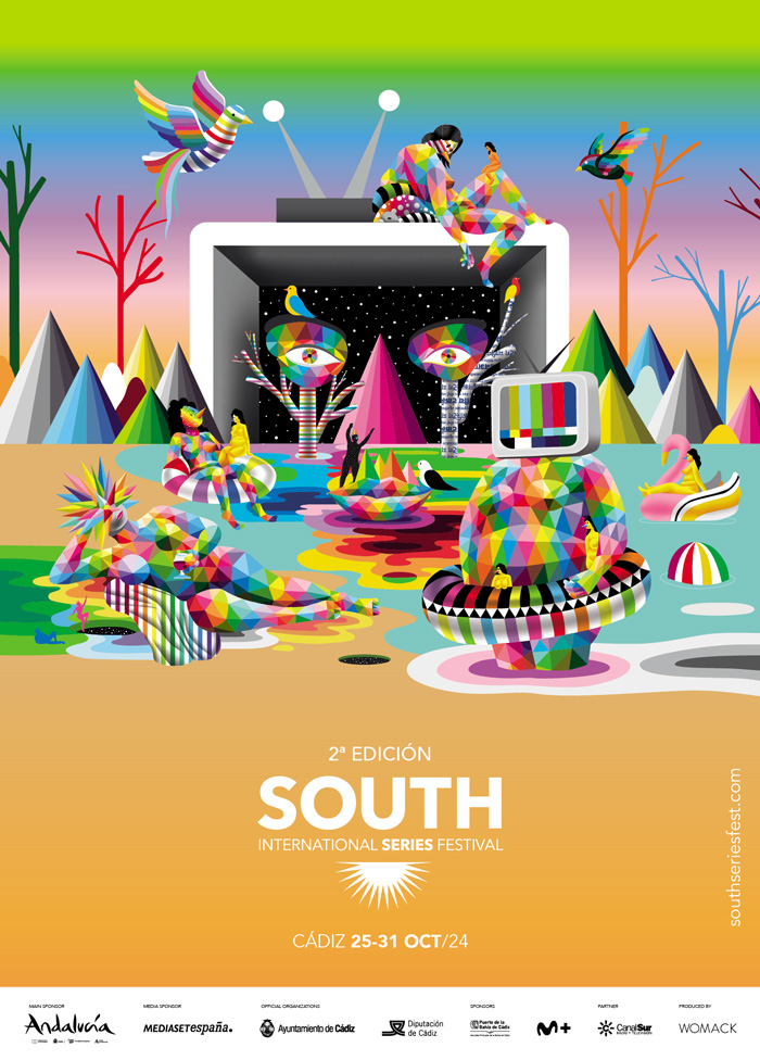 Tras el rotundo éxito del pasado año con su primera edición de la que nos hicimos eco en este blog, el South International Series Festival presentaba ayer en la Casa de Iberoamérica en Cádiz la imagen del cartel que anuncia ya su segunda edición. Un colorido cartel diseñado por Okuda San Miguel que plantea “una escena donde la naturaleza gaditana y el mundo audiovisual se fusionan, creando ese portal o canal que invita a explorar esos posibles universos del cine”, y que ha sido presentado con la presencia de Joan Álvarez, Director de South International Series Festival; Okuda San Miguel, autor del cartel de la segunda edición del South International Series Festival; Arturo Bernal, Consejero de Turismo, Cultura y Deporte de la Junta de Andalucía; Vanesa Beltrán, Diputada de Cultura de la Diputación provincial de Cádiz; Teófila Martínez, Presidenta de la Autoridad Portuaria Bahía de Cádiz y Bruno García, Alcalde de Cádiz.
