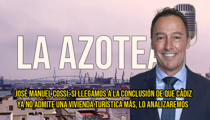 El primer teniente alcalde del Ayuntamiento de Cádiz, José Manuel Cossi se sube a nuestra AZOTEA para hablar del problema de la vivienda y de la limitación de licencias para apartamentos turísticos que anunciaba el alcalde hace algunas semanas. Con Cossi hablamos también de la posibilidad de que Cádiz baje de los 100.000 habitantes, de los planes del Ayuntamiento con la construcción de nuevas viviendas o de la tasa turística