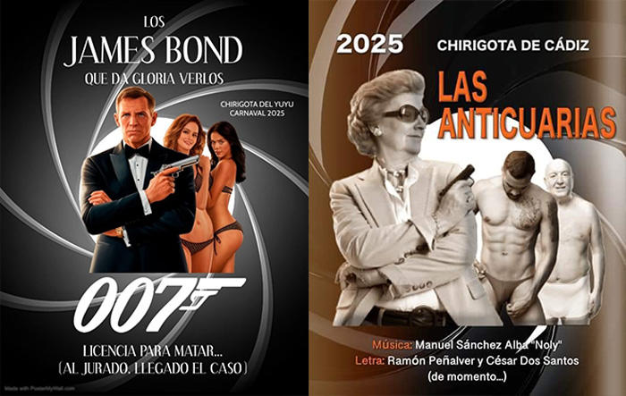 Sin embargo dan rienda suelta a la guasa y carga gaditana con el cartel de la chirigota en la que se puede ver a una señora mayor sosteniendo una pistola al más puro estilo James Bond acompañada de fondo por dos hombres con torsos desnudos en clara alusión al cartel de la chirigota del Yuyu «Los James Bond que da gloria verlos» que tanta polémica provocó por utilizar la imagen de dos mujeres en ropa interior.