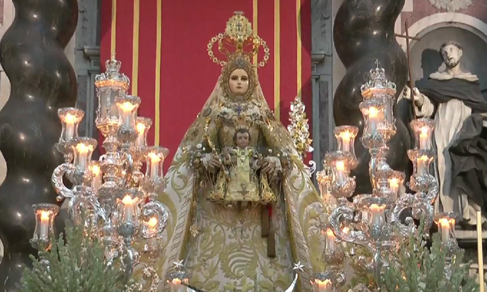 La Virgen del Rosario tenía previsto realizar su salida procesional a partir de las 18.30 horas, bajo el acompañamiento musical de la banda de música Maestro Dueñas, de El Puerto de Santa María y recorriendo Compás de Santo Domingo, Plocia, Plaza de San Juan de Dios, Avenida 4 de diciembre, calle Sánchez Barcáiztegui, Manzanares, Cobos, Plaza de la Catedral, Pelota, Plaza de San Juan de Dios, Sopranis y Convento de Santa María, donde hubiese llegado alrededor de las 21.30 horas. No ha podido ser. El año que viene será.