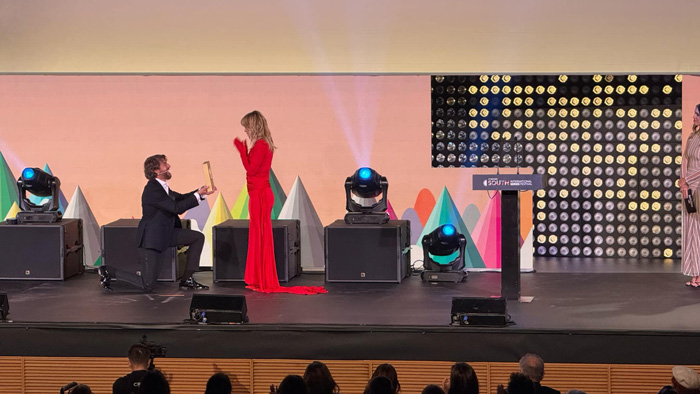 Por la alfombra de ayer pasaron un buen número de rostros conocidos. Desde Javier Guitérrez a Gurruchaga pasando por Niña Pastori, Ruth Gabriel, Elena Furiase y Daniel Grao (que presentaron la gala), Félix Gómez o la galardonada María Adánez. También pasó como un relámpago porque debía estar en Madrid por cuestiones de trabajo Leonor Waiting. Por cierto, atención a su serie «La Vida es Breve» que se estrenará en Movistar el año que viene porque es buenísima. Una comedia canalla que cuenta la vida de Luis I encarnado con mucho age por Carlos Scholz, también presente en el festival junto a un reparto del que forma parte Javier Gutiérrez en la piel de Felipe V. La presentadora Toñi Moreno fue sin duda la más ovacionada. No es para menos. Fue de las pocas en acercarse al público para hacerse fotos con todo el que se lo pedía. Los gritos de ¡Toñi, Toñi! la ruborizaban un poco: «Esto es porque es mi tierra ¿eh?» le decía quitándose méritos a un compañero de TVE. Sorpresa agradable con Paloma Bloyd, muy simpática y sencilla. La arisca Deborah de la inolvidable «Cuéntame Cómo Pasó» me sorprendió para bien. Risas con las ocurrencias de Samantha Hudson y Torito también por allí. Por cierto, junto a éste último me encontré al gran Yusan Acha, director del inolvidable «Que Tiempo Tan Feliz» que presentó María Teresa Campos y que dirigió la Gala de anoche. Pues muchos de éstos rostros tuvieron el inmenso detalle de pasarse por los micrófonos de LA AZOTEA. Agradecido a todos