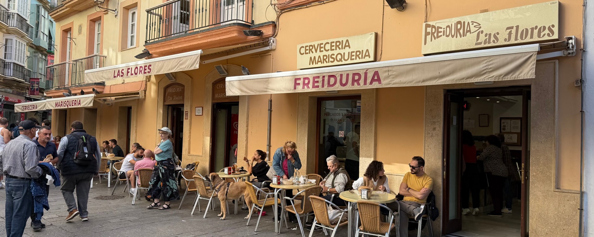 Dominguito tranquilo. De esos que uno no come en la calle pero tampoco quiere ponerse a cocinar. ¿Qué tal unos papelones de pescaíto frito? Eso siempre es un acierto. Que si unos choquitos, cazón en adobo, croquetas, unas aceitunas y las siempre agradecidas patatas. Tengo la suerte de vivir en pleno centro de Cádiz y eso me anima a acercarme a la Freiduría Las Flores en la plaza de Topete. Nada más llegar advierto una enorme cola de gente esperando mesa. Bueno, a mí eso no me afecta porque voy a pedir para llevar. Sin embargo cuando me dispongo a sacar el número para saber mi turno no doy crédito. Miro varias veces mi número y el marcador que tienen colgado en la pared. Observo cómo decenas de guiris y de gente del resto de la península se alimentan durante la espera de ese inconfundible olor que sale del freídor tan nuestro. Y caigo en la cuenta que con el olor me voy a tener que conformar ¿Cincuenta números de espera? Estamos hablando de unos cuarenta y cinco minutos como poco. Yo me alegro de que las cosas le funcionen así de bien pero por razones obvias abortamos plan y buscamos otra alternativa.