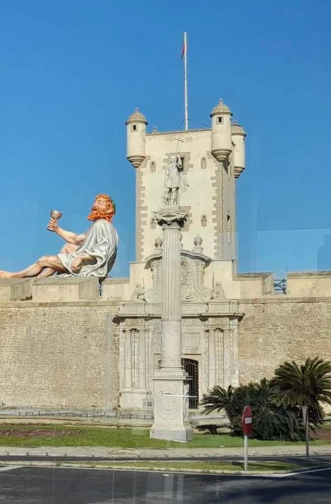 A lo justo y corriendo. Al más puro estilo Cadi, el Dios Baco se ha colocado en el torreón de las Puertas de Tierra y allí estará hasta el próximo 9 de marzo. Nos alegra recuperar los exornos para las Puertas de Tierra porque era algo que se venía pidiendo desde hace tiempo y que generó mucha ilusión cuando se dio a conocer la noticia. Muchos gaditanos se acordaban del Hércules colocado en el torreón de las Puertas de Tierra en la época de Carlos Díaz que marcó a toda una generación.
