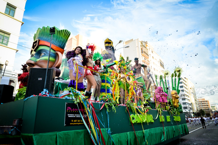 Nada más lejos de la realidad. A partir de las tres o tres y media de la tarde el cielo comenzaba a despejarse dejando un estupendo día en el que todo seguía el curso que debía de seguir: los carruseles en las diferentes plazas de la ciudad, los tablaos, las agrupaciones en la calle y la Cabalgata en la Avenida. El Dios Baco ya en las Puertas de Tierra recibía los numerosos miradas de todo aquel que por allí pasaba por aquello de ser la novedad de este año…