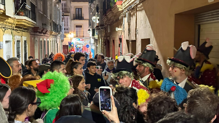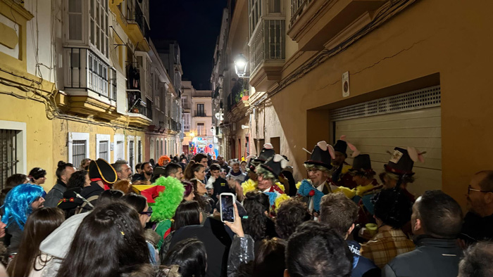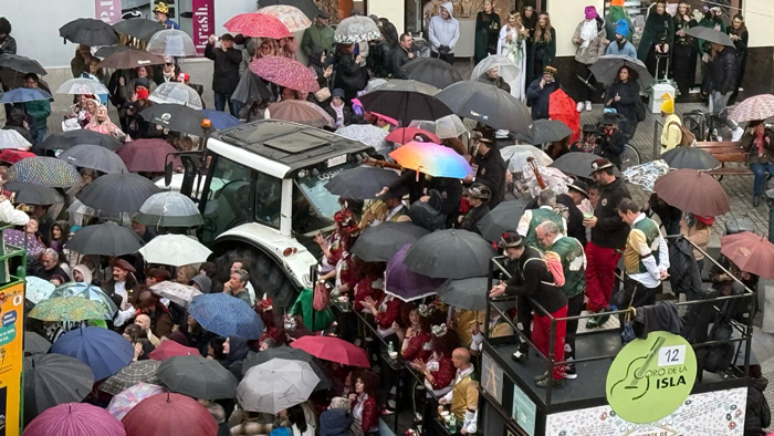 Cuando hay ganas de carnaval, nada puede con ello. El segundo sábado de Carnaval estuvo marcado por las lluvias intermitentes que hacían al numeroso público sacar los paraguas a cada momento. Pero nada era impedimento para seguir escuchando coplas y compartir momentos con amigos y familiares en las calles de la ciudad. La Cabalgata del Humor salió a las 18.00 del Colegio Santa Teresa para bordear el casco antiguo. Lo mismo este recorrido no es el más acogedor. Encima si le sumas la lluvia y el viento, la Cabalgata no se vio calurosamente acompañada. Por cierto, mismas carrozas que el año anterior…