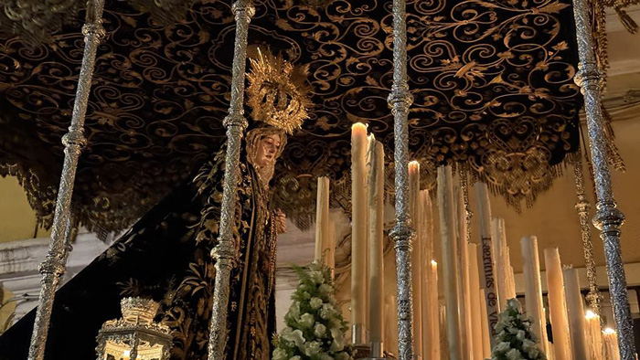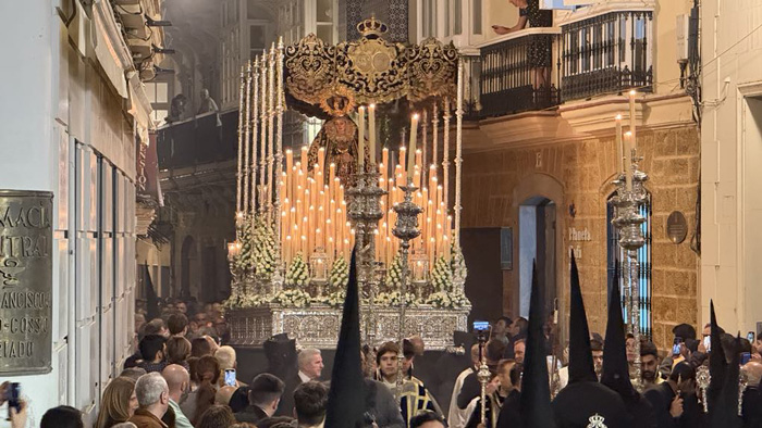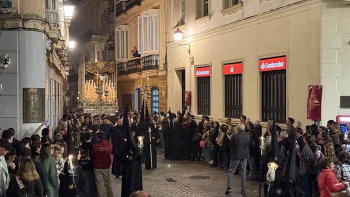 Con la incertidumbre de un tiempo que se presenta para los primeros días de Semana Santa algo complicado, Dolores de Servitas salió anoche a la calle en un Viernes de Dolores donde la lluvia no hizo acto de presencia. Eso se notó alrededor de la iglesia de San Lorenzo donde mucha gente la esperaba con ganas de Semana Santa. Tras un nefasto año como fue el pasado a causa de las lluvias, los gaditanos se arremolinaban en las calles para esperar a la Dolores y empaparse así del ambiente cofrade: el olor a incienso, las esperas, los encuentros con amigos, la emoción de quienes poseen la fe y la admiración de quienes acuden a las procesiones por el arte que las rodea. Llamó la atención ver a Miguel Ángel Sastre, pregonero de la Semana Santa de Cádiz, entre el cuerpo de acólitos. A las siete de la tarde la Virgen de los Dolores salía de la iglesia San Lorenzo con este itinerario. Viernes de Dolores superado.