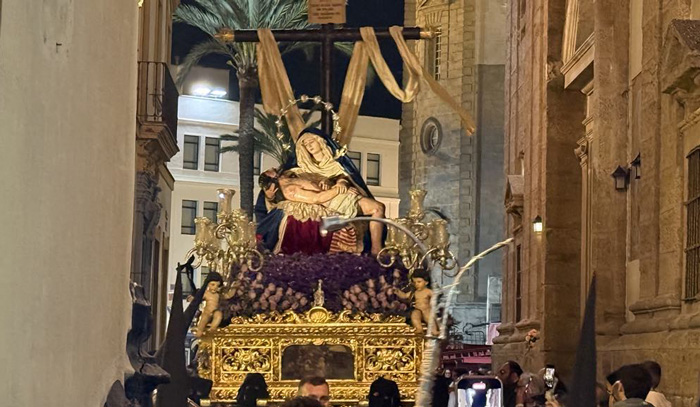 Aunque con la cabeza puesta en el cielo y en los partes meteorológicos, lo cierto es que en Cádiz se ha podido vivir el Miércoles Santo de manera prácticamente normal. Digo lo de prácticamente porque por ejemplo y a sabiendas de la posibilidad de lluvias que se daba para la noche, la hermandad de Sentencia fue más rápido de lo habitual recogiéndose prácticamente una hora y media antes. Para que vean que cuando se quiere… Como nota destacable, dos cosas: lo bonita que estaba la Virgen del Caminito con sus nuevos ropajes y el apuro que sufrió la Virgen de Cigarreras en el túnel de Compañía con Santiago. No sabemos las causas. Rumores corrían de toda clase: desde que no cabía el paso por allí a que la cuadrilla ya no podía más. A saber. Finalmente pudieron salir adelante. Eso sí, cuando el Cristo de Cigarreras entraba en la plaza de la Catedral ya de recogida, comenzaba a caer una fina lluvia que desató las alarmas porque durante unos minutos fue un poco más fuerte. Aun así fue durante unos minutos solos. En general buen Miércoles Santo. Había ganas.