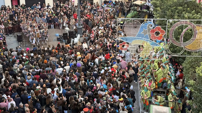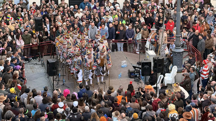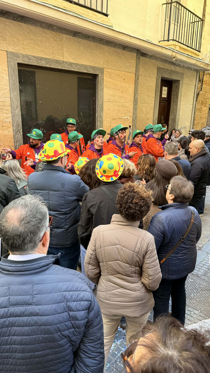 Por fin y después de cerca de prácticamente dos meses de lluvias, el cielo de Cádiz ha amanecido completamente libre de nubes y un sol que calmaba el frío con el que ha despertado la ciudad después de una larga Final. Así sobre la una del mediodía se comenzaban a ver los primeros disfraces de una jornada que se adivinaba intensa. Las Batallas de Coplas tenían lugar como es habitual en la plaza del Palillero y el Mercado de Abastos. El público deseoso de carnaval se arremolinaba delante de las agrupaciones oficiales que iban ofreciendo su repertorio y las primeras ilegales que salían a la calle.