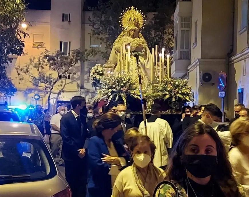 A horas de la festividad de la Virgen del Rosario, la Virgen de Gracia y Esperanza de la hermandad de Oración en el Huerto ha celebrado su Rosario vespertino por el barrio de San Severiano. El itinerario ha sido el siguiente: Plaza de San Severiano, Brunete, García de Sola, Vicente Aleixandre, García Lorca, Bellavista, Utrera, Ciudad de Santander, Tolosa Latour y Plaza de San Severiano. … Continúa leyendo La Virgen de Gracia y Esperanza celebró su rosario vespertino por San Severiano