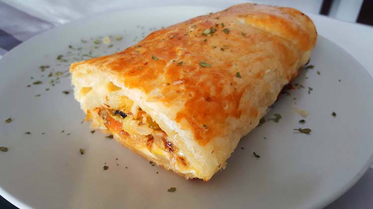 Rollitos de tortilla de jamon y queso a la crema de piquillo