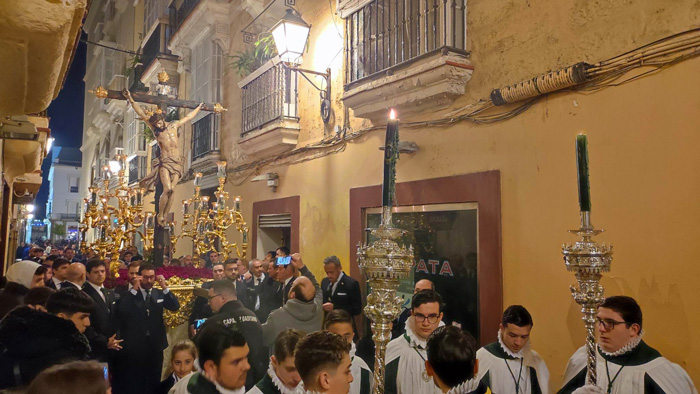 Mucho público a las puertas de la iglesia de San Francisco. La capital gaditana se encuentra ya inmersa en sus actos de Cuaresma y éste era uno de ellos. A las 21.00 horas salía en Solemne Vía Crucis el Santísimo Cristo de la Vera+Cruz por el 250 aniversario de su bendición y puesta al culto. Así que poco antes de las nueve de la noche … Continúa leyendo El Cristo de Vera-Cruz salió en ViaCrucis por el 250 aniversario de su bendición
